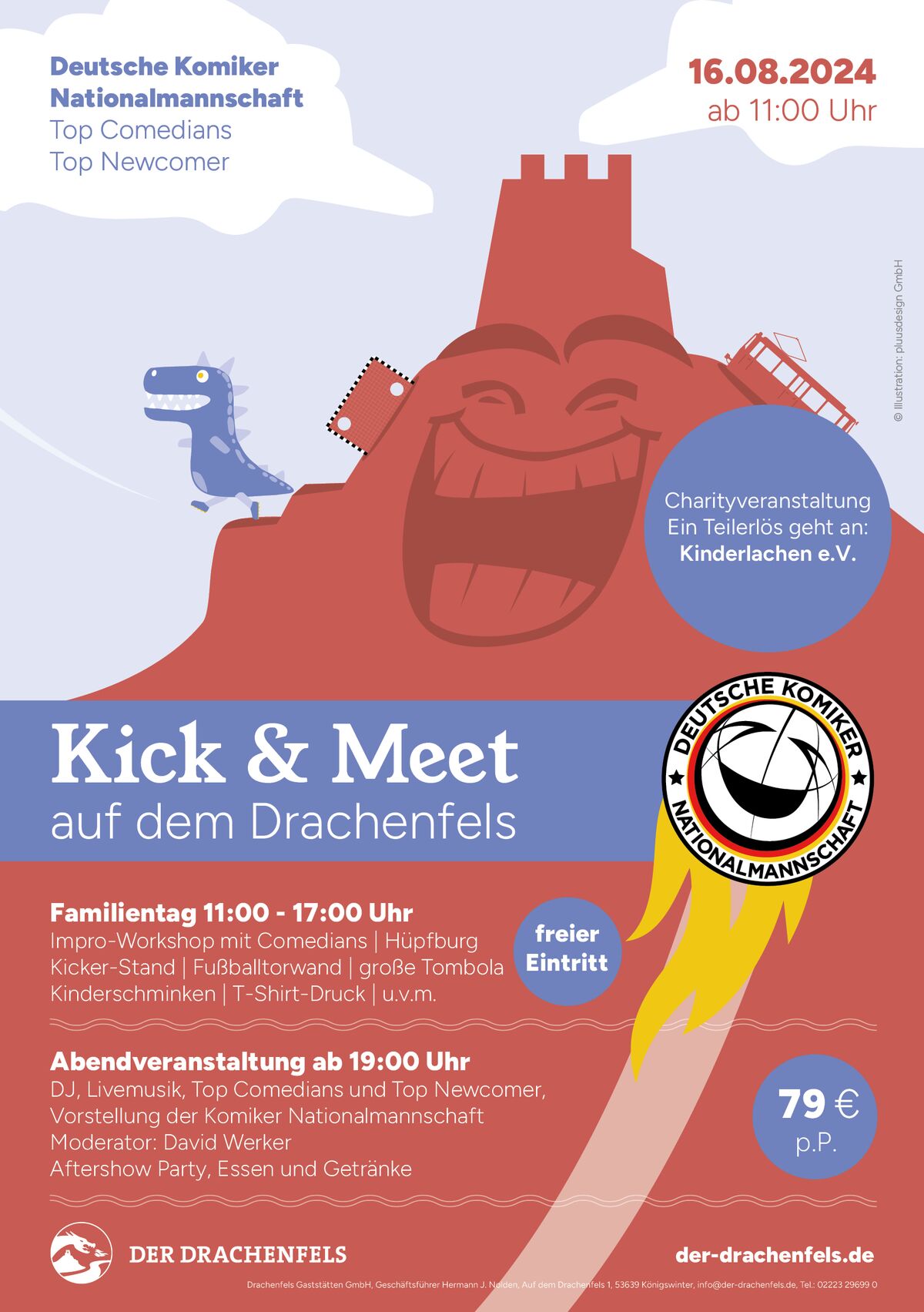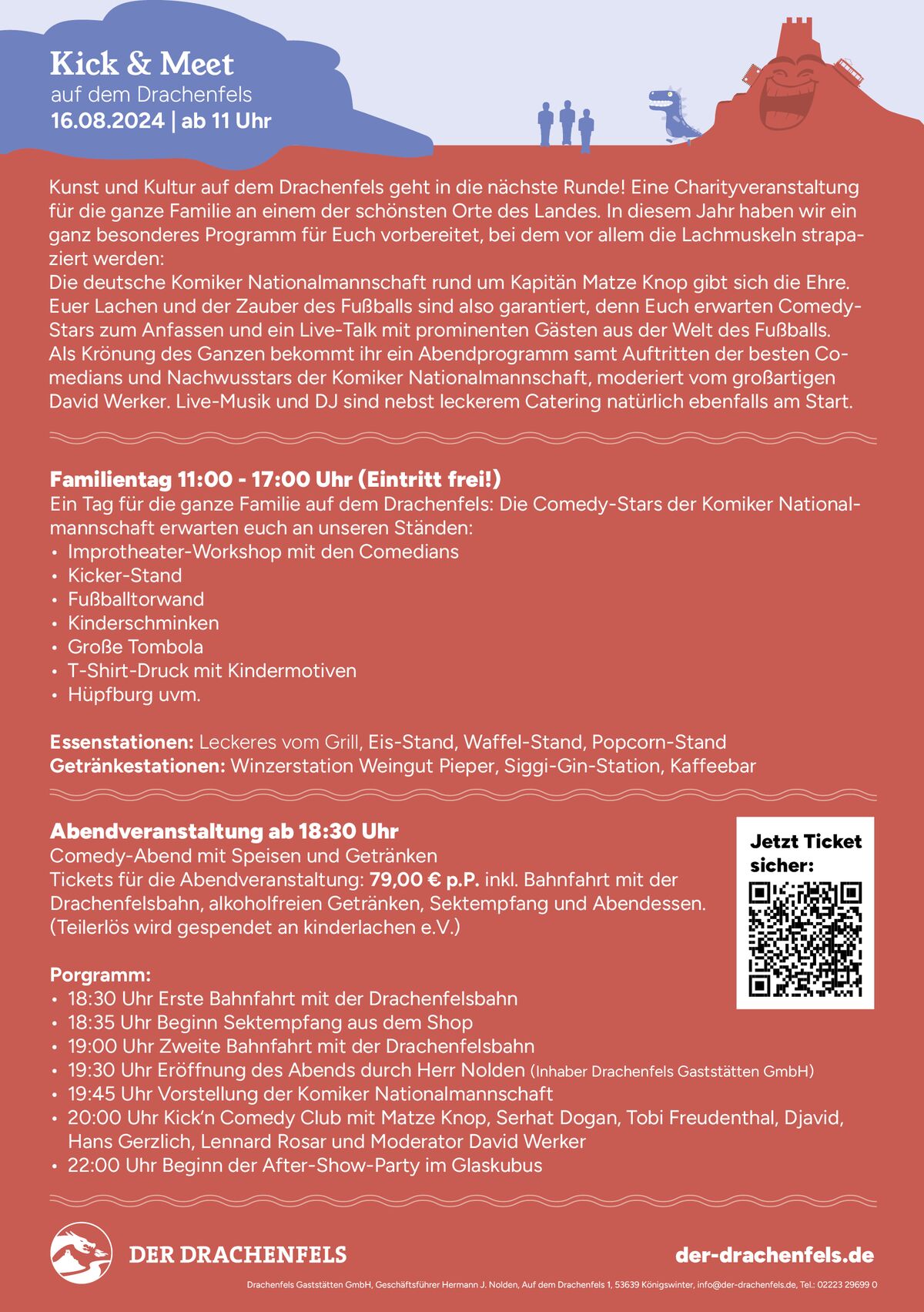 Ein Tag für die Ganze Familie auf dem Drachenfels: Die Comdey-Stars der Komiker-Nationalmannschaft erwarten euch an unseren Ständen: